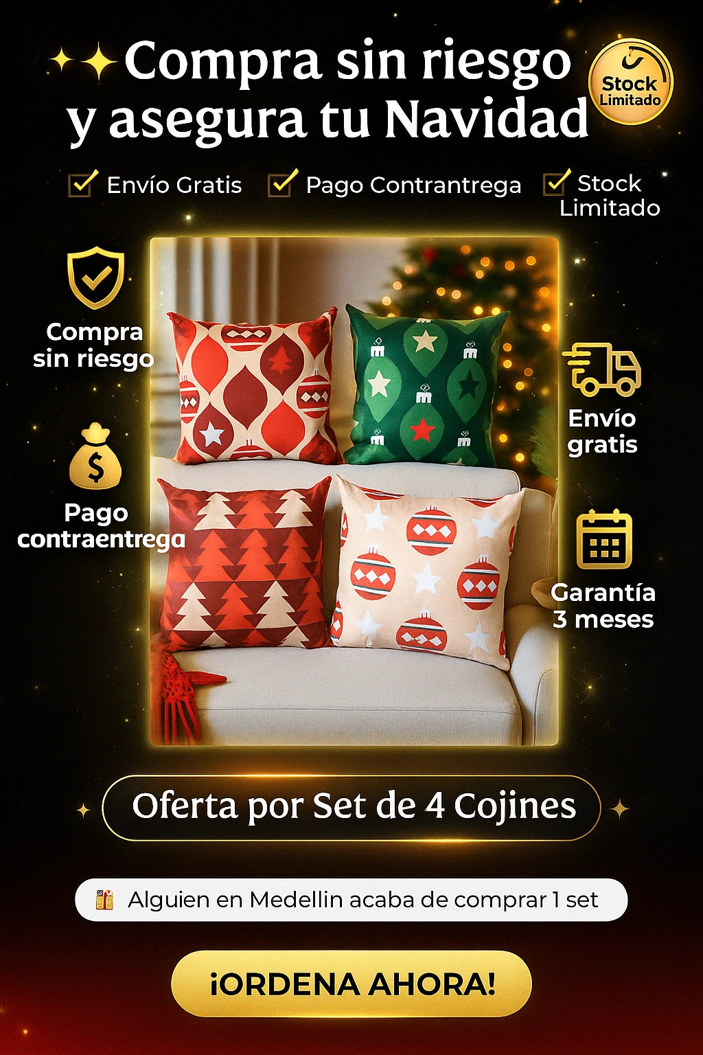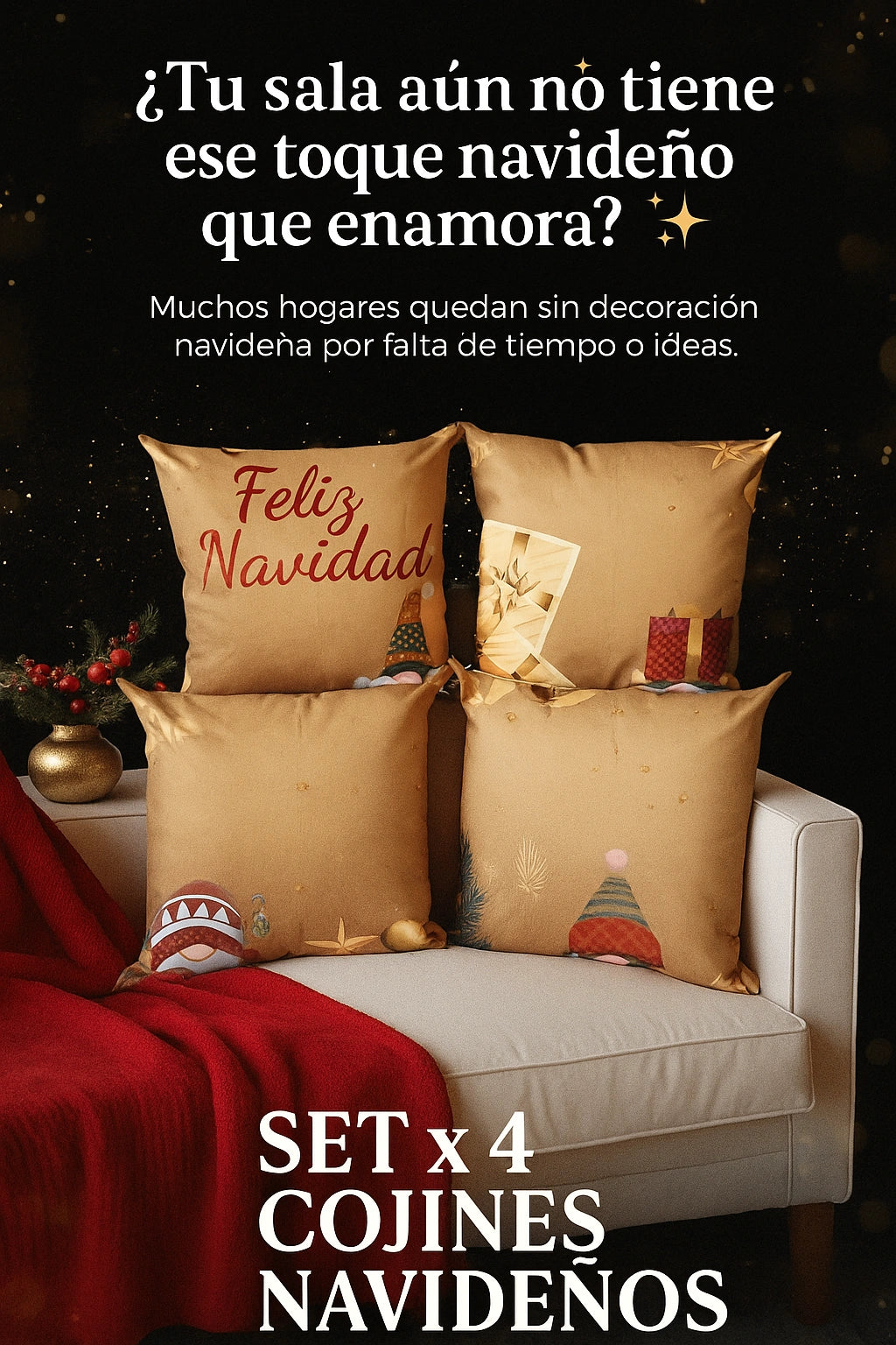 🎁 El set incluye 4 cojines navideños con diseños exclusivos para que puedas decorar tu hogar de inmediato y sin complicaciones.