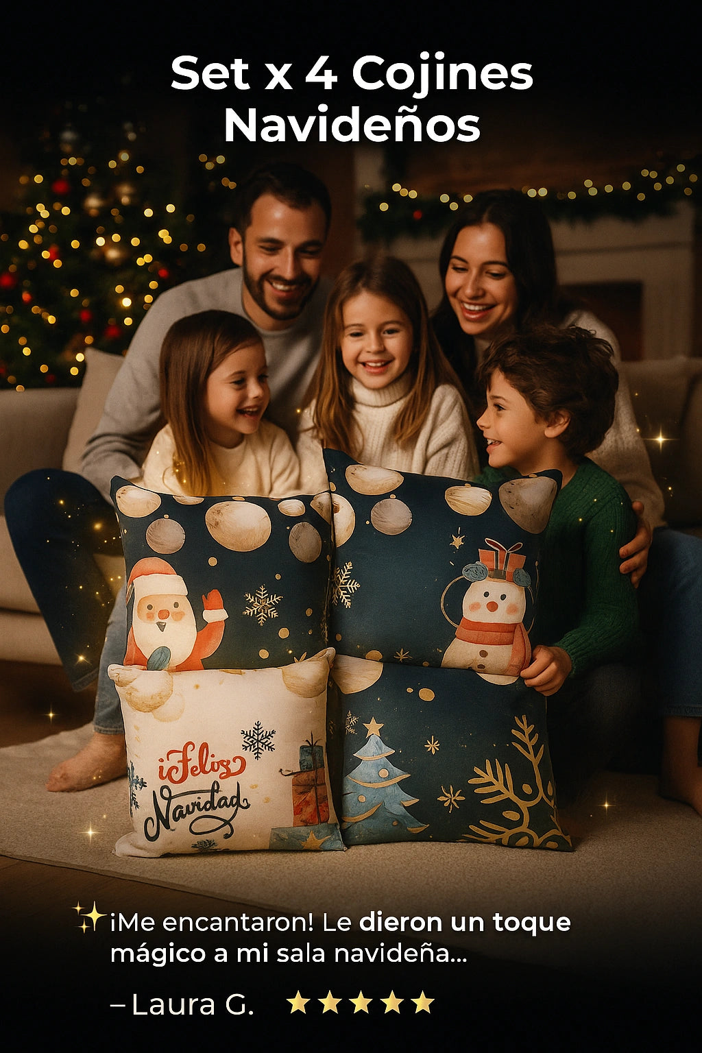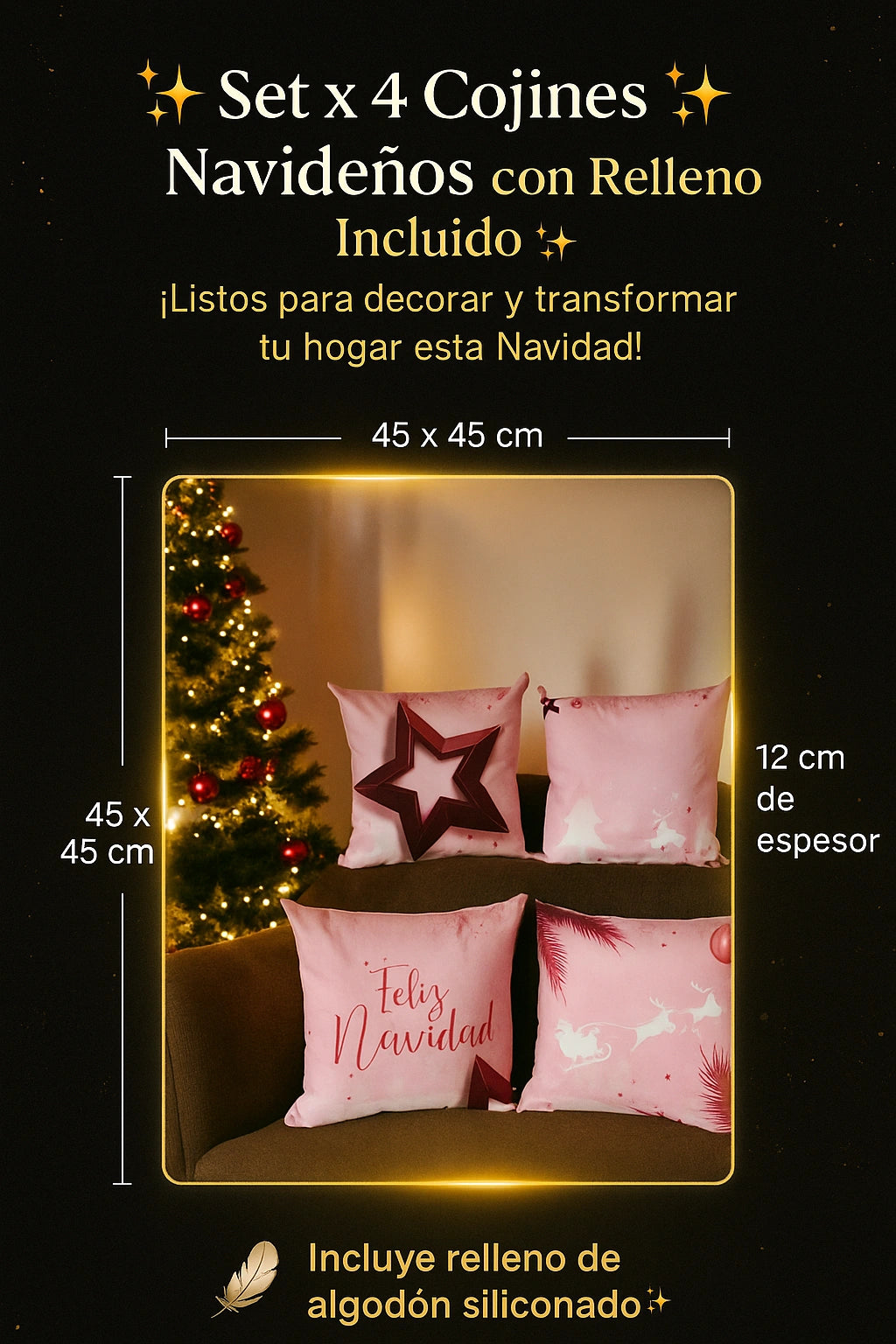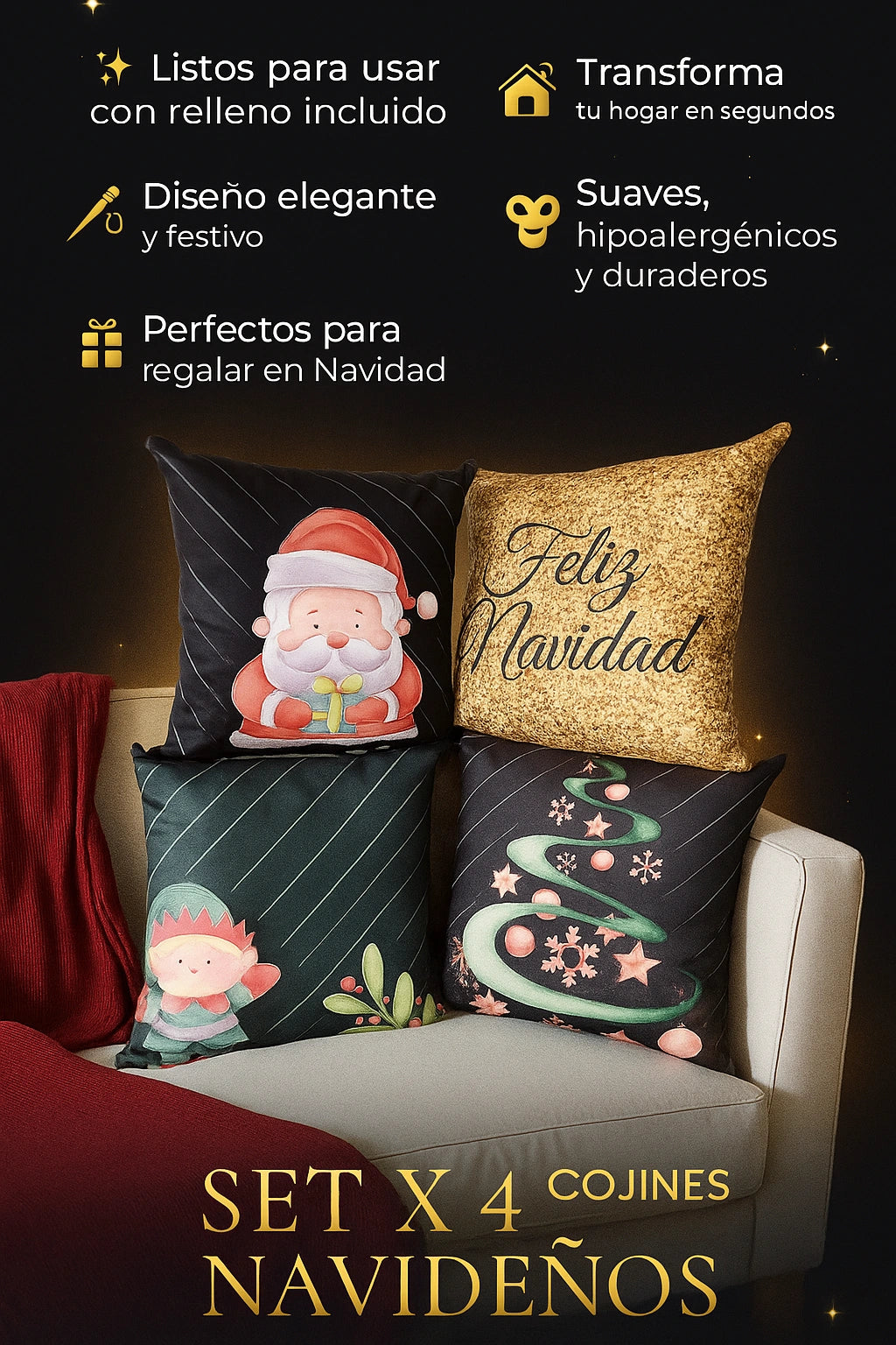Set 4 Cojines Navideños (45x45cm) Incluye Relleno-Comodidad, diseño y elegancia