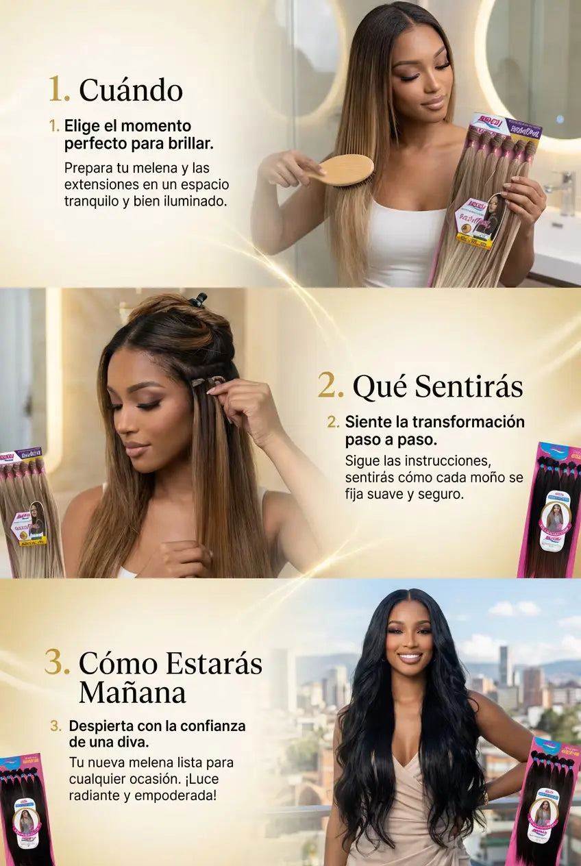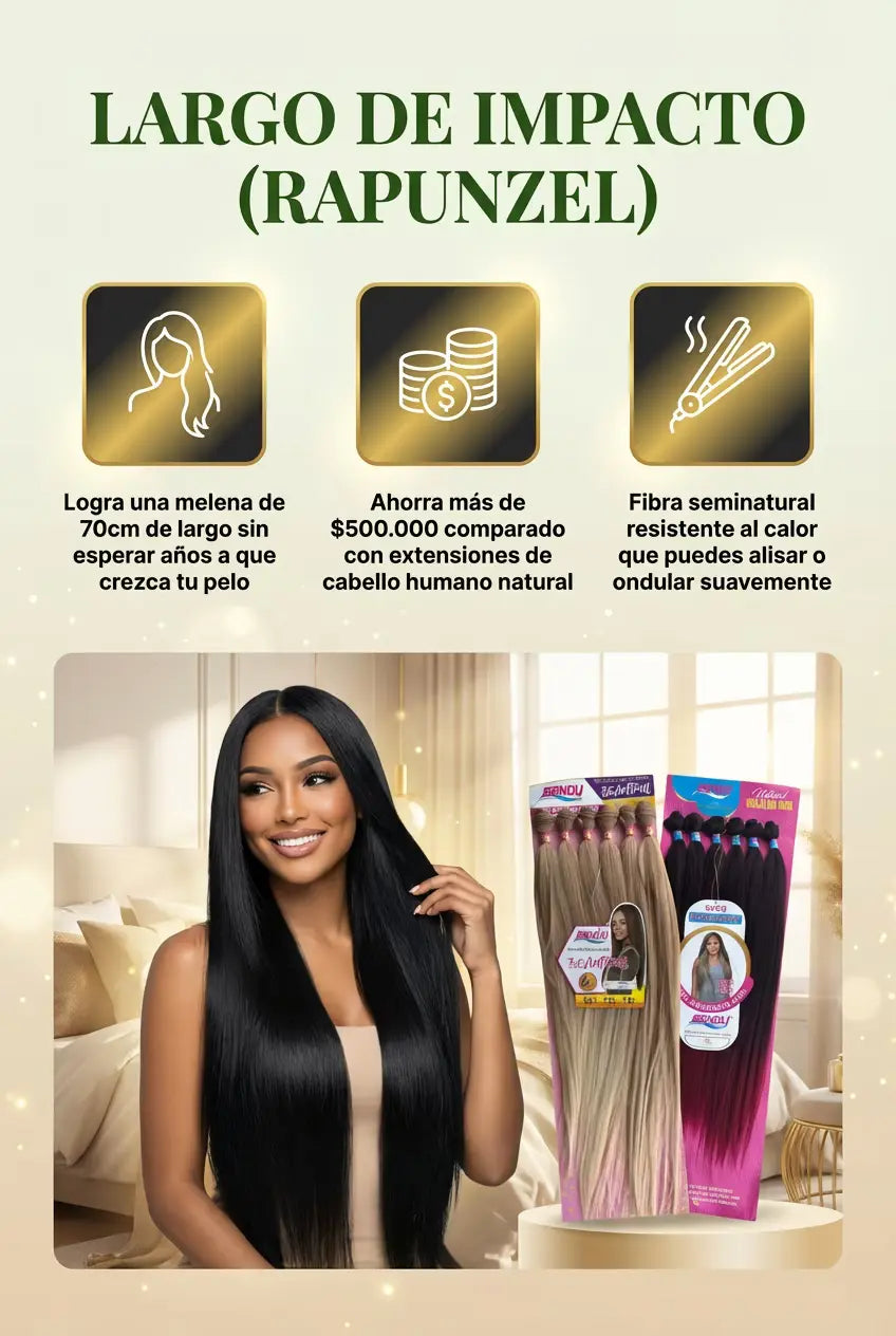 Son extensiones seminaturales de alta calidad, diseñadas para imitar el brillo y movimiento del cabello real, ofreciendo un acabado muy natural.
