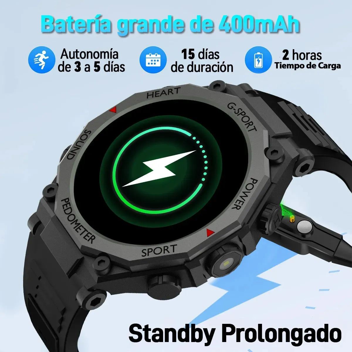 La batería puede durar hasta 10 días, dependiendo del uso. Ideal para olvidarte de cargarlo todos los días.