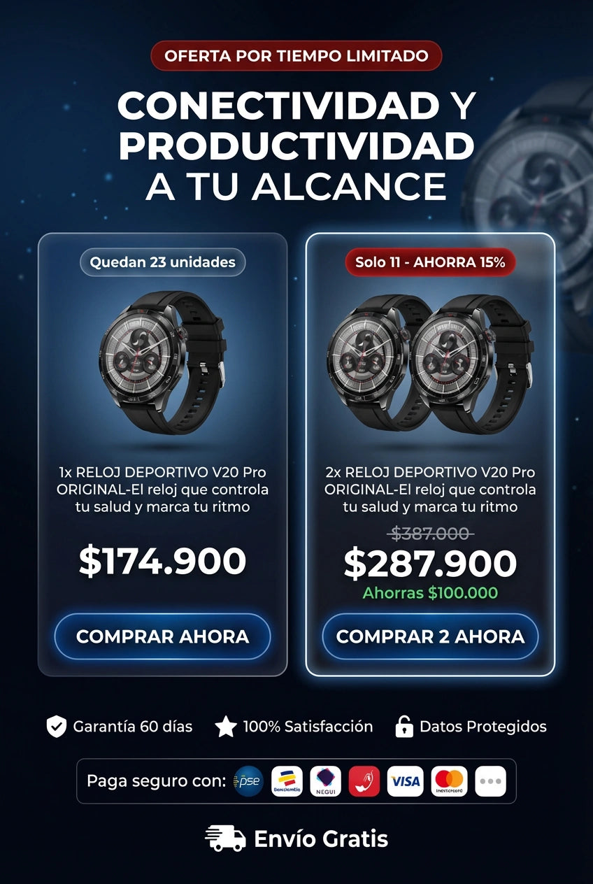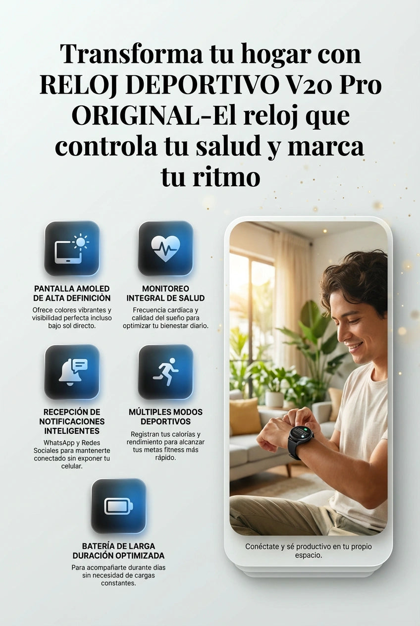 Sí. El Smartwatch V20PRO es compatible con Android y iPhone. Solo debes descargar la app indicada y sincronizarlo fácilmente.
